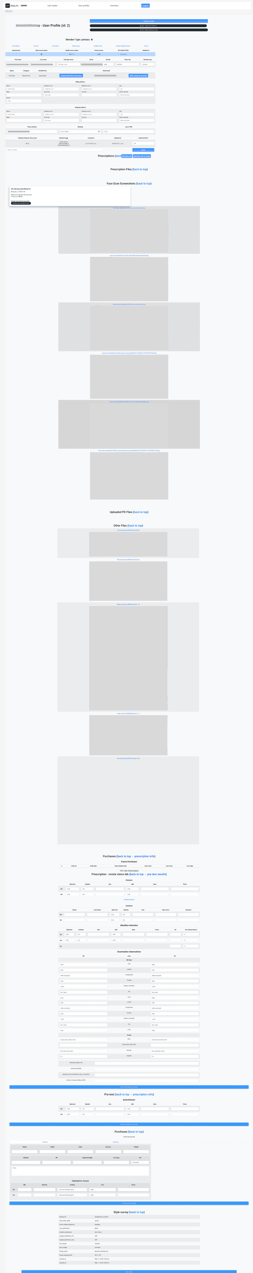 Below is the actual user profile (View Only): an endless scroll with little logic, buried customer info, and Rx locations that changed depending on how they were uploaded.